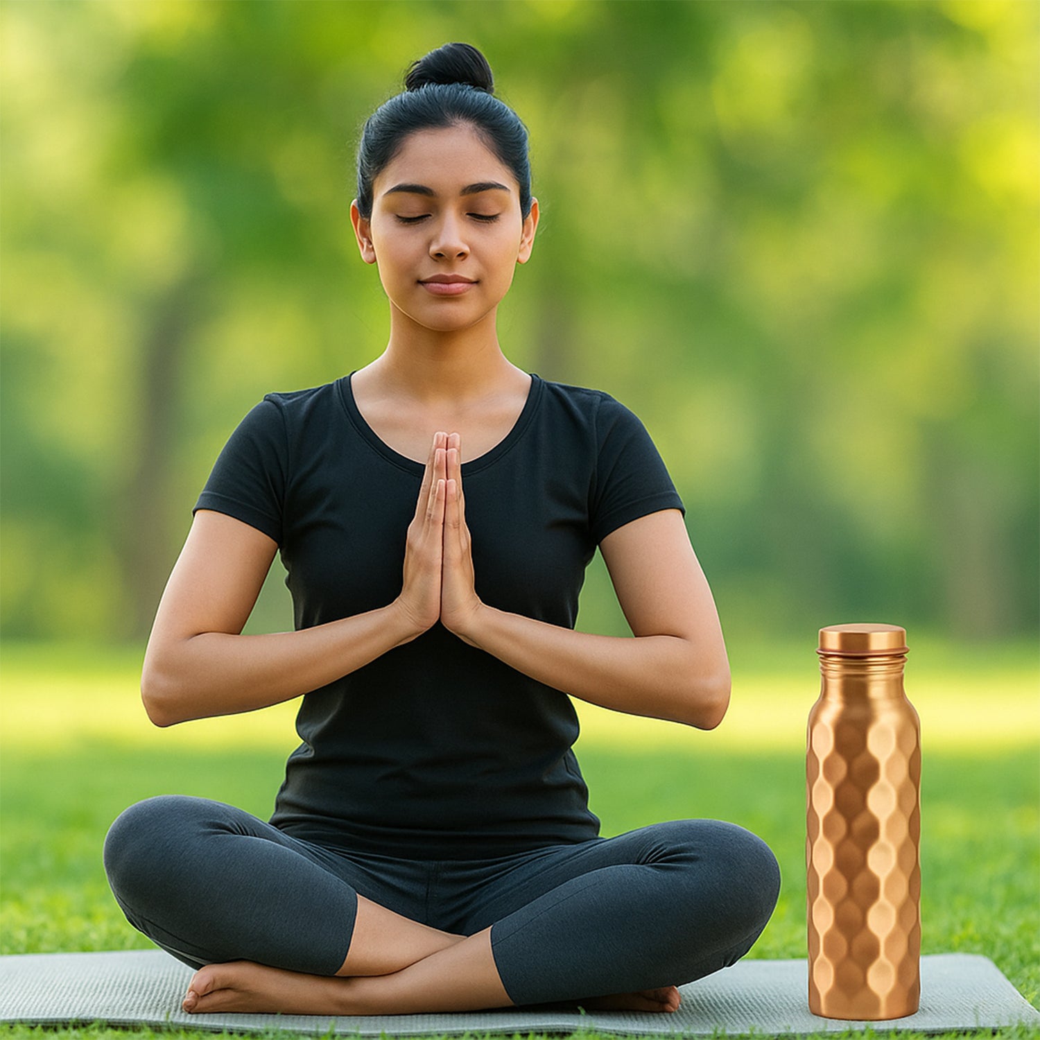 Diamond Cut Copper Water Bottle 2 Glasses with Gift Box and Paper Bag for Diwali, Birthday & Parties, Bottle-1000 ml & Glass-300 ml Approx (3 Pcs Set)